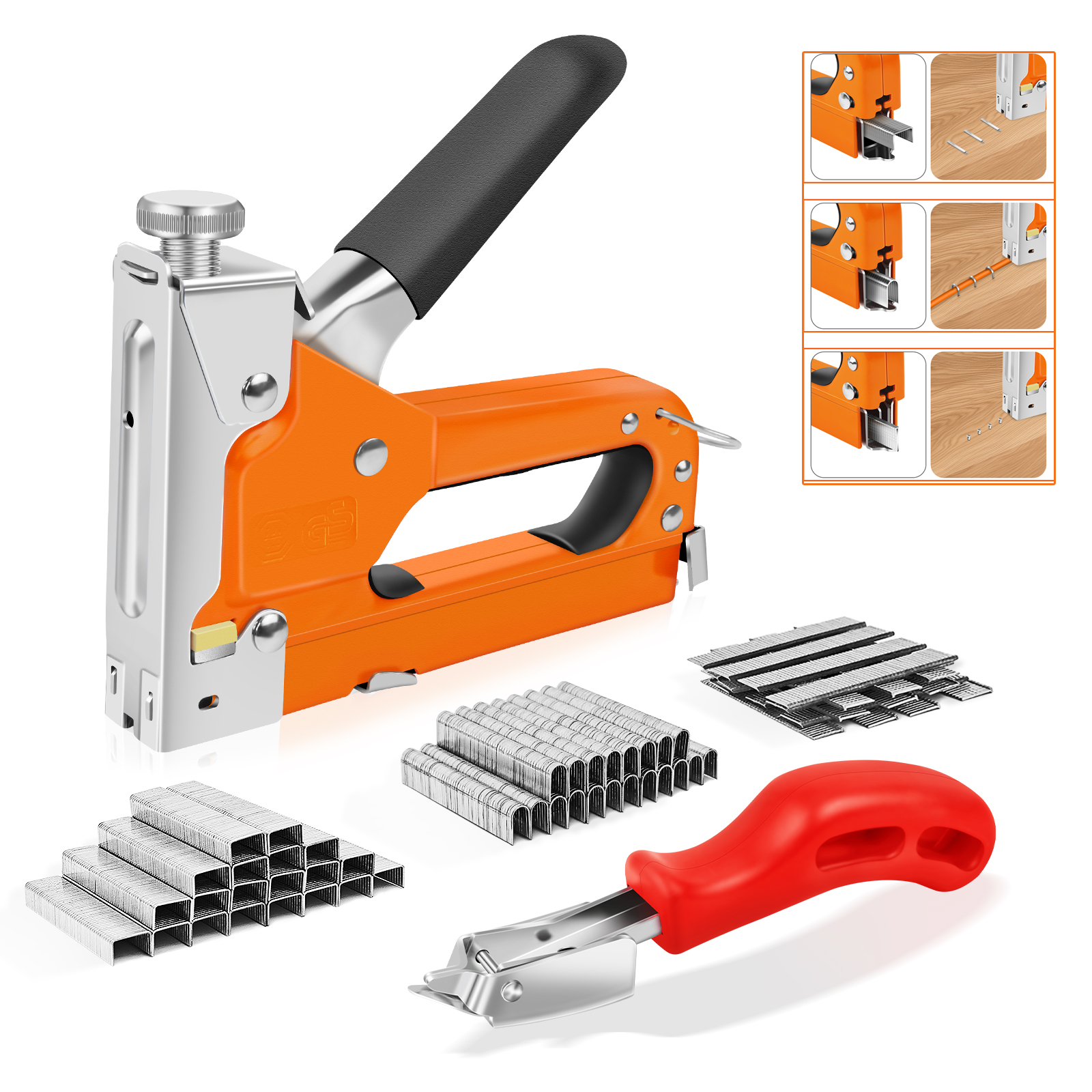 📣 Utility Kit – Includes an all-metal 3-in-1 staple gun, 3000 staples and a staple remover. Staples include 1000 8mm D-staples, 1000 12mm U-staples (T18); 1000 10mm T-staples (Brad Staple Thickness 18). This set meets most of your needs.