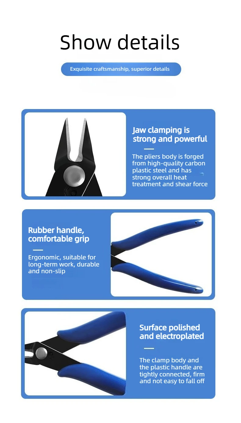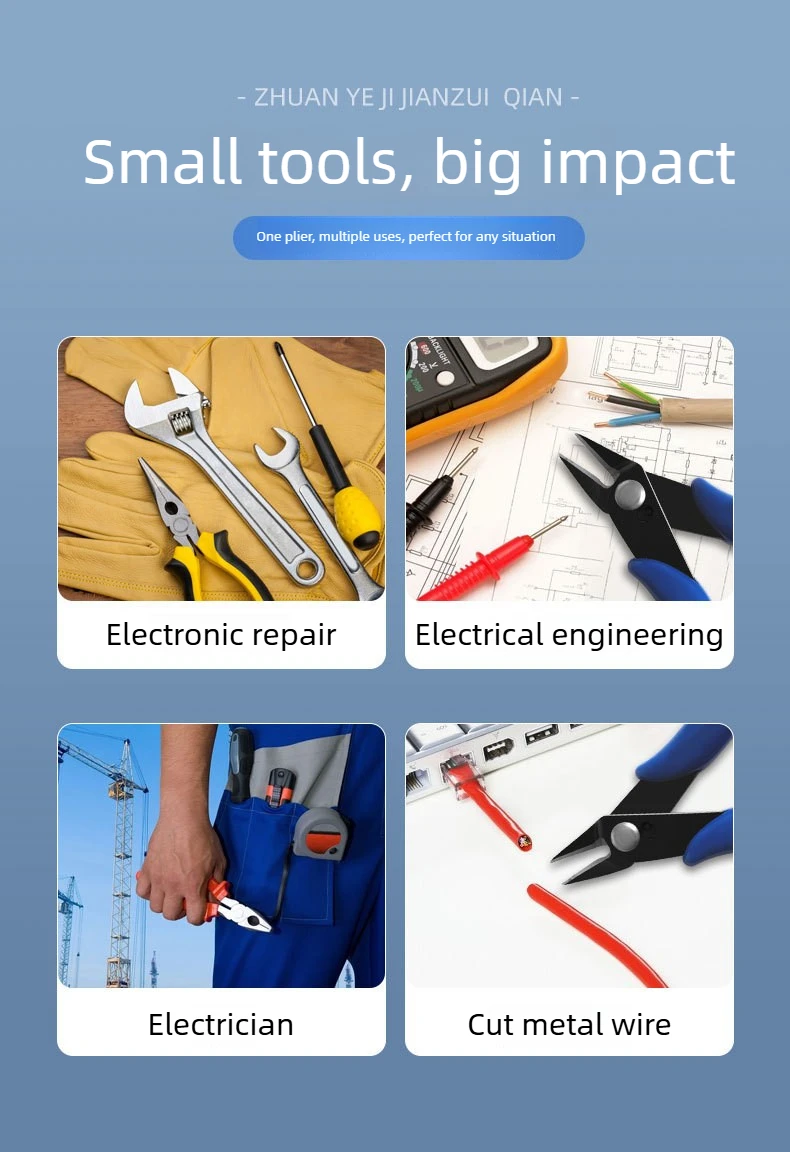 5.Special suitable for: electronic industry repair, jewelry processing, model making and fishing,for example ,cutting wire, electronic feet, trimming plastic products, cut a small metal wire, and so on