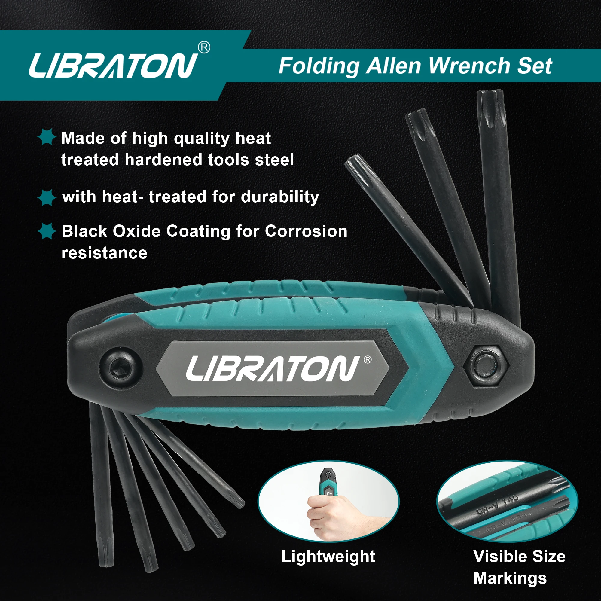 Libraton 8 in 1 Folding Torx Hex Key Allen Pocket Portable Security Star Wrench Kit Sizes T-9 to T-40 for Home Maintenance DIY